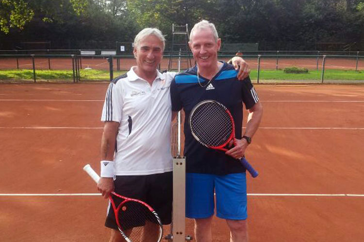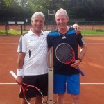Das Abschluss-Match der HAARtraum-Clubliga bestritten im Anschluss die Senioren Peter Boczek und Heinz Mecking. Die Mannschaftskollegen der Herren 50 lieferten sich ein packendes Match, dass Teamkapitän Mecking mit 1:6, 6:4 und 6:3 für sich entscheiden konnte.