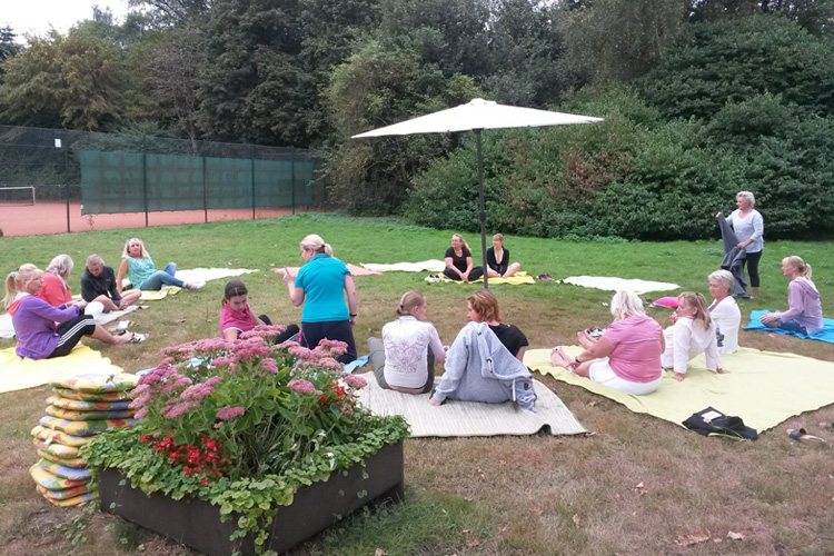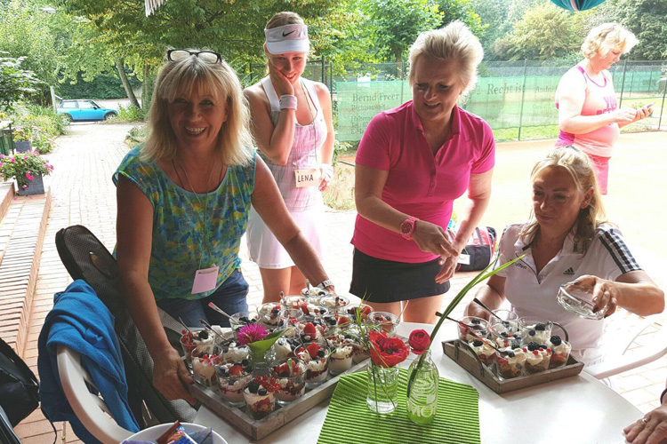 Etwa 20 Damen nahmen am vergangenen Sonntag am Ladies Day teil und hatten viel Spaß bei tollem Wetter. Die vielseitigen Programmpunkte waren liebevoll vorbereitet und sorgten für viel Freude und Heiterkeit bei unseren Tennis Damen. Dabei wurde nicht nur ein Tennis-Turnier gespielt. Der Tag begann mit einem Sektfrühstück und bot auch zwischendurch immer wieder viel Zeit zum Kennenlernen und Zusammensitzen bei verschiedenen Leckereien und Überraschungen. Weitere Aktivitäten waren Yoga und ein Tennis-Quiz.
