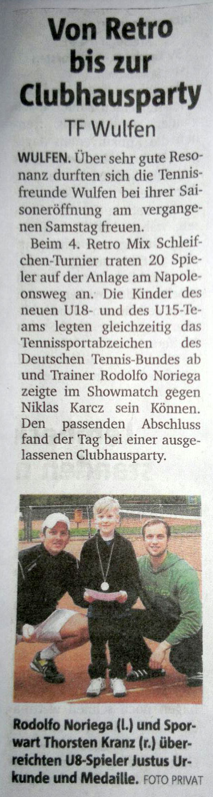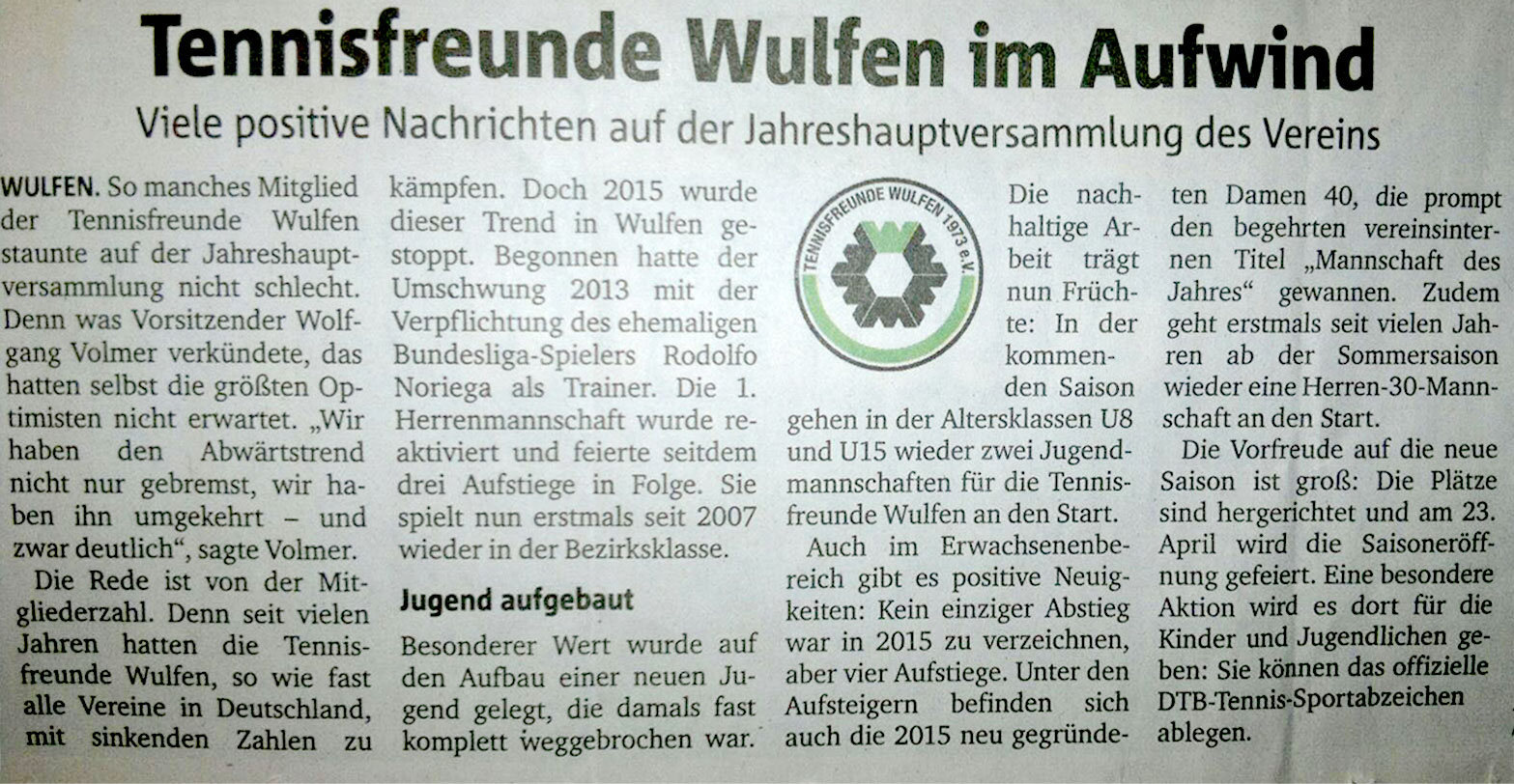 Tennisfreunde Wulfen 1973 e.V. Napoleonsweg 21 46286 Dorsten Westfälischer Tennis-Verband e.V. Region: Münsterland Vereins Nr.: 2041212
