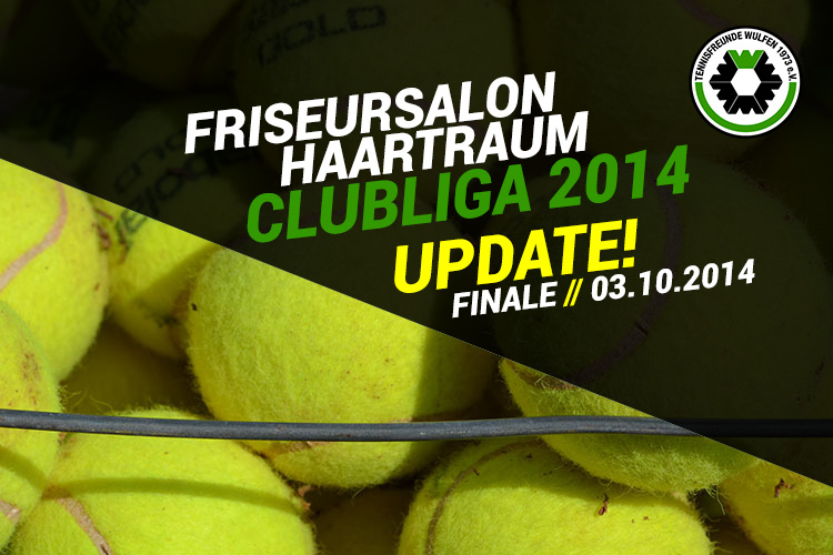 Liebe Tennisfreundinnen & Tennisfreunde, wir möchten am freien Freitag, 3. Oktober 2014 unseren Saisonabschluss mit Euch feiern! Rahmenprogramm ist der HAARtraum-Clubliga-Finaltag mit drei spannenden Finals: 12:30 Uhr – Platz 3 – Finale Herren Doppel n.v. 14:30 Uhr – Platz 3 – Finale Herren Einzel n.v. 16 Uhr – Platz 3 – Finale Senioren Einzel Den